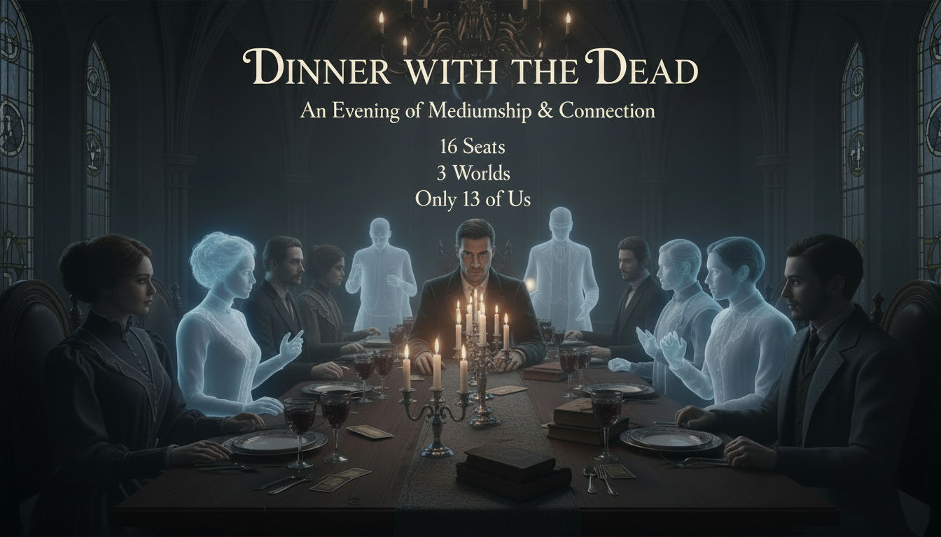 Intimate Mediumship: With only 13 guests, the energy is incredibly potent. Throughout the dinner, I will be delivering direct evidence and healing messages from the spirits present in the room.